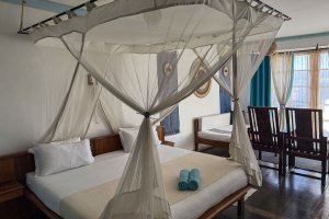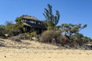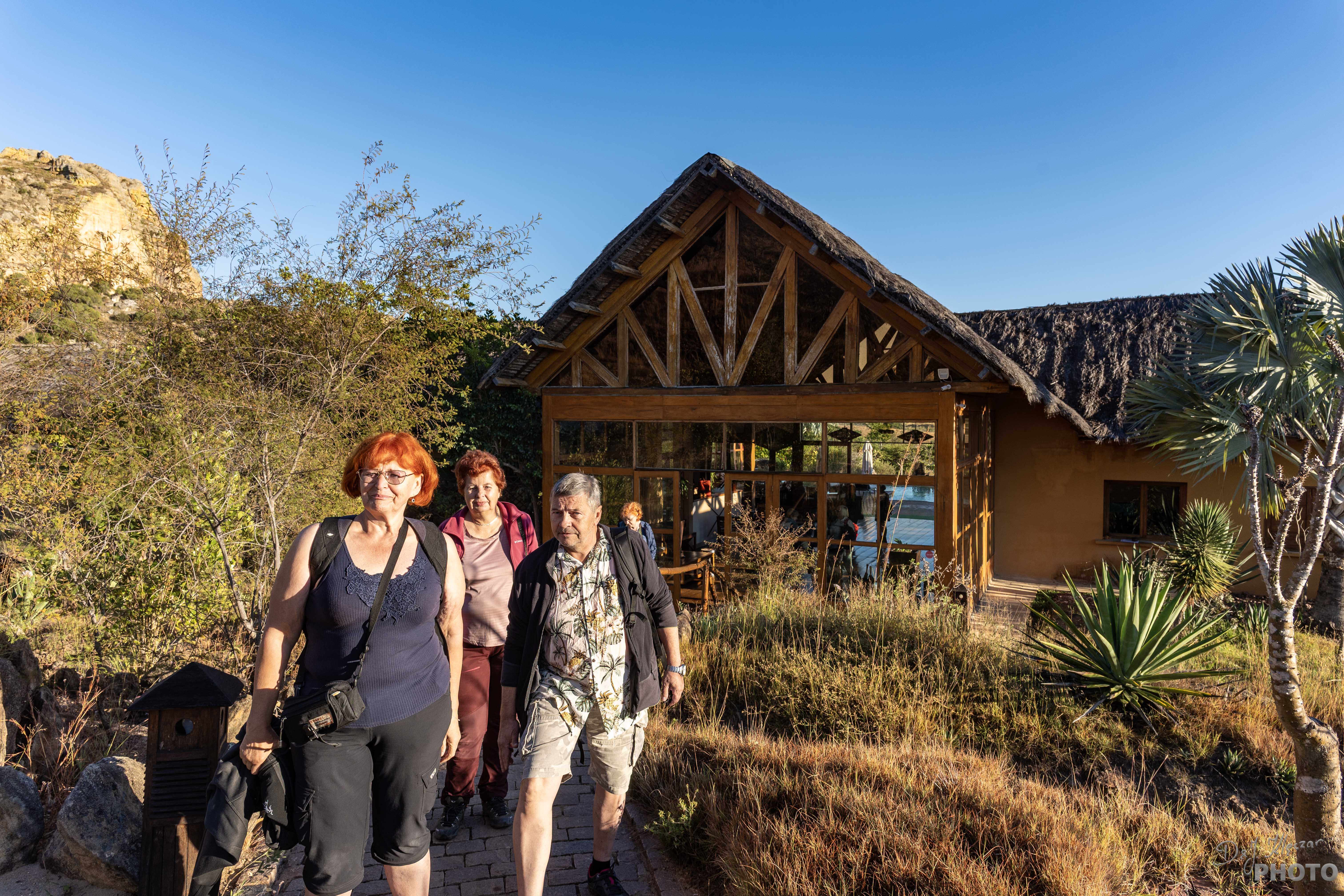 Późnym popołudniem dojechaliśmy do pięknie położonego nad samym oceanem naszego hotelu „Le Paradisier” w pobliżu Ifaty. Zamieszkaliśmy w piętrowych bungalowach na sporym klifie nad plażą.