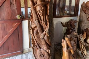 Po drodze zatrzymaliśmy się w warsztacie obróbki drewna. Prace nam się bardzo podobały.