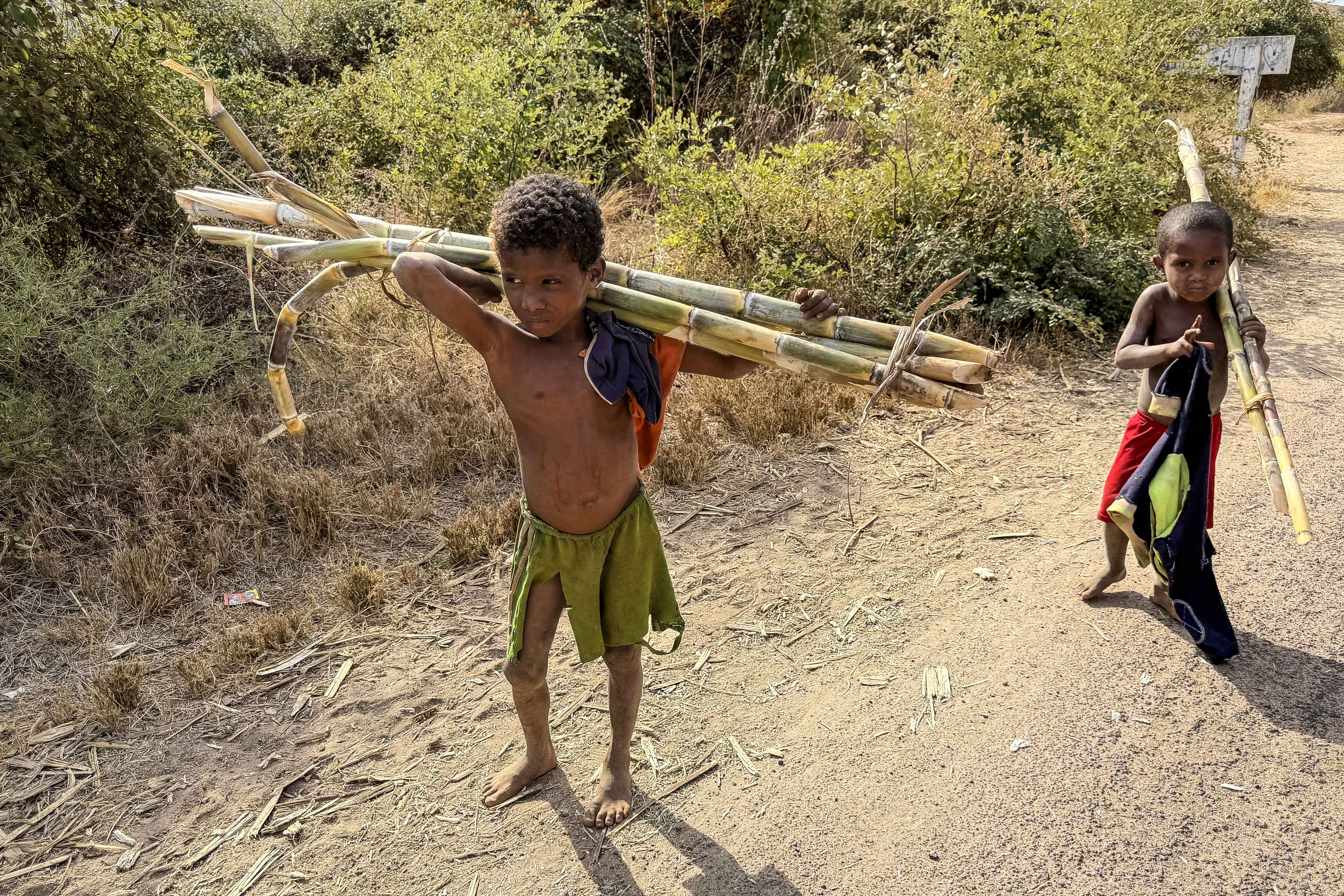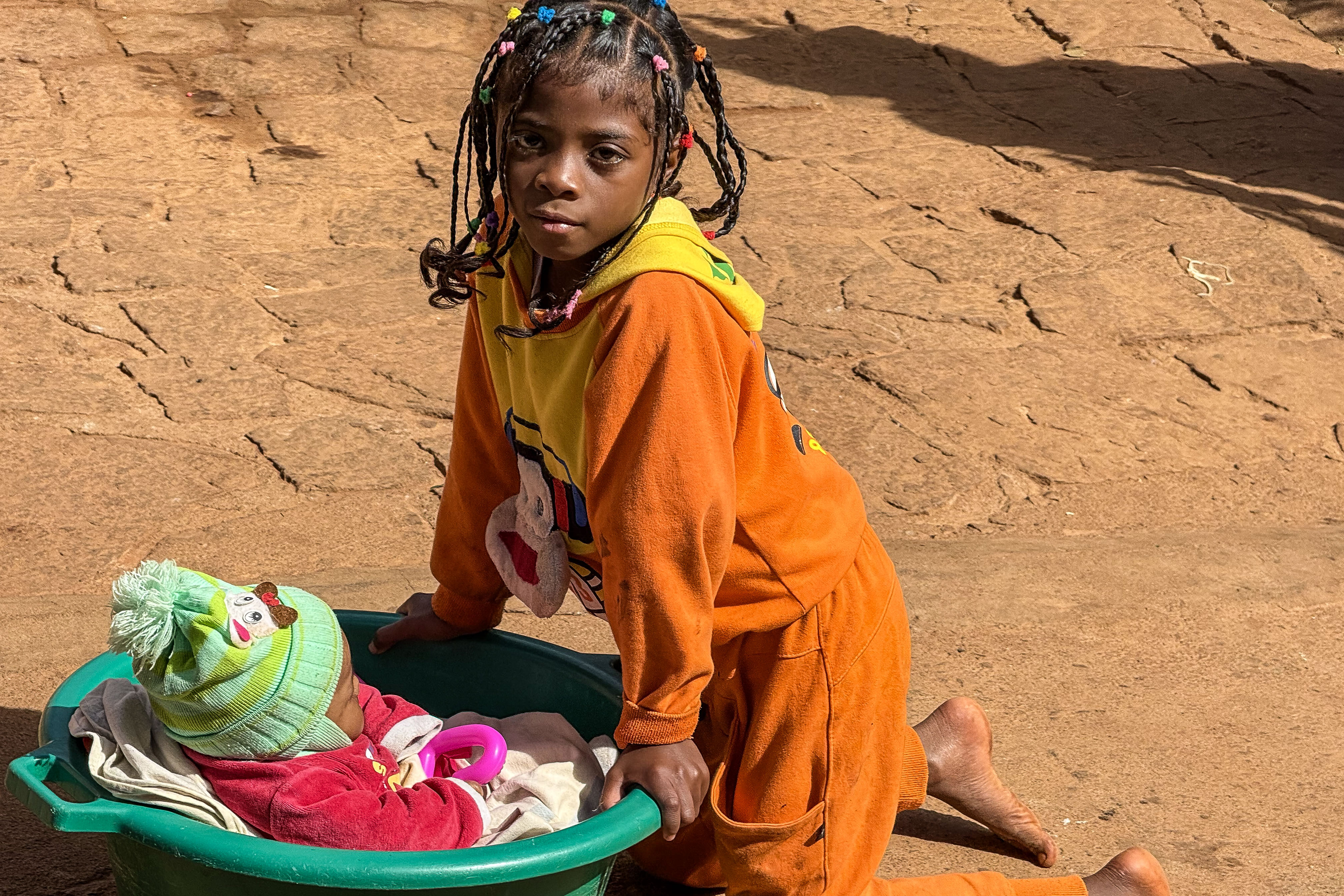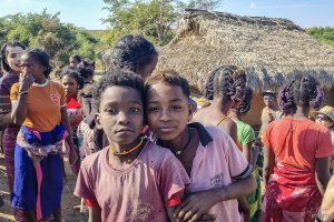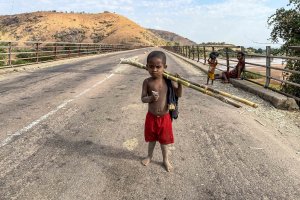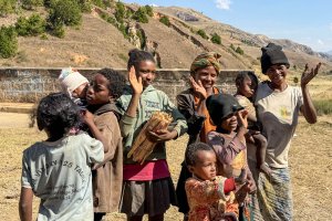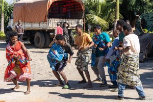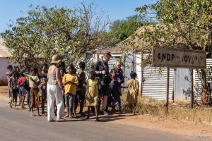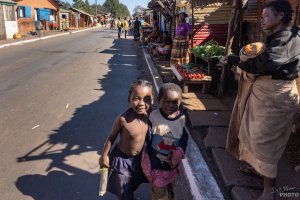 Po spacerze wśród baobabów ruszyliśmy w dalszą drogę. Droga się skończyła – tzn. jechaliśmy czymś na czym były ślady pojazdów, ale tylko jeepy mogły to pokonać. Madagaskar to jeden z najbiedniejszych krajów świata co mieliśmy okazję zobaczyć w mijanych wioskach. Ludzie żyją tu w szałasach, bez dostępu do elektryczności i podstawowych usług. Za to pożądanym modelem rodziny jest 2+14 – (najlepiej 7 córek i 7 synów) tak więc dzieci jest tu pełno.