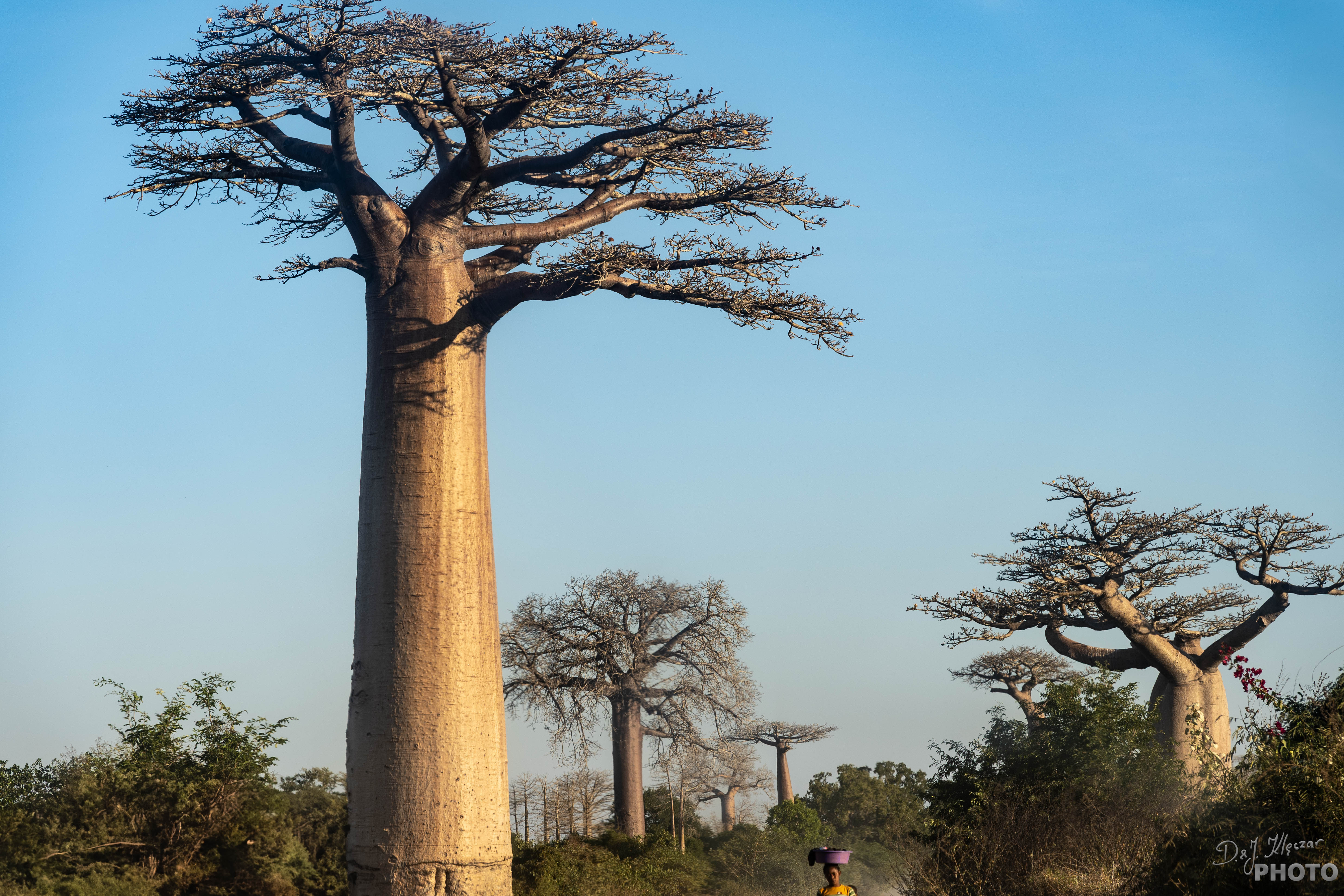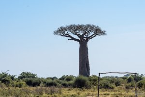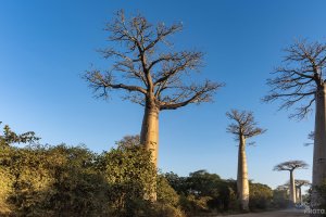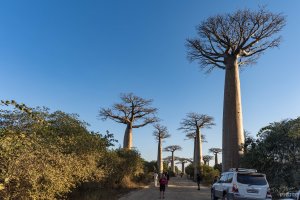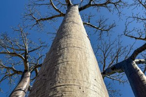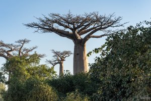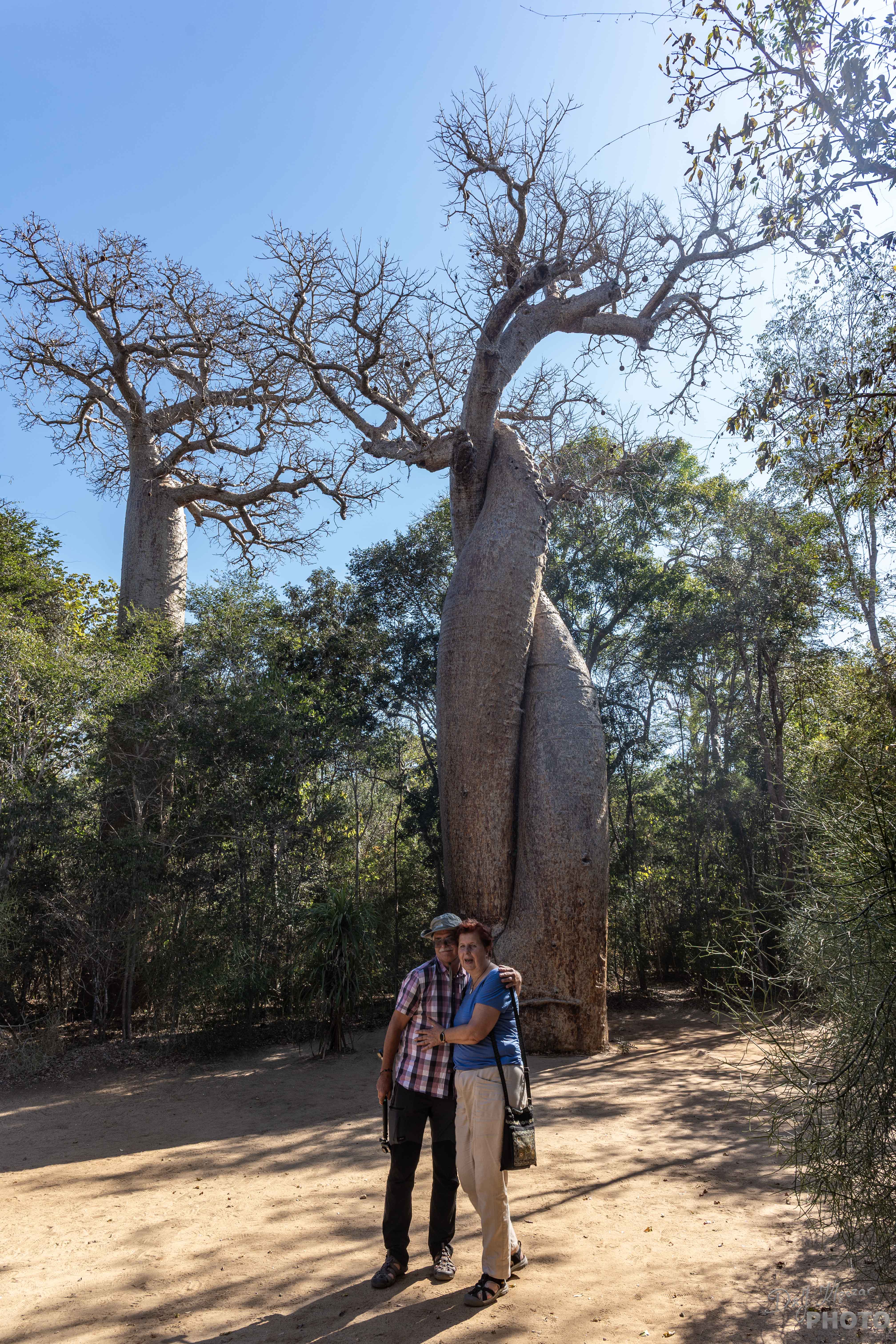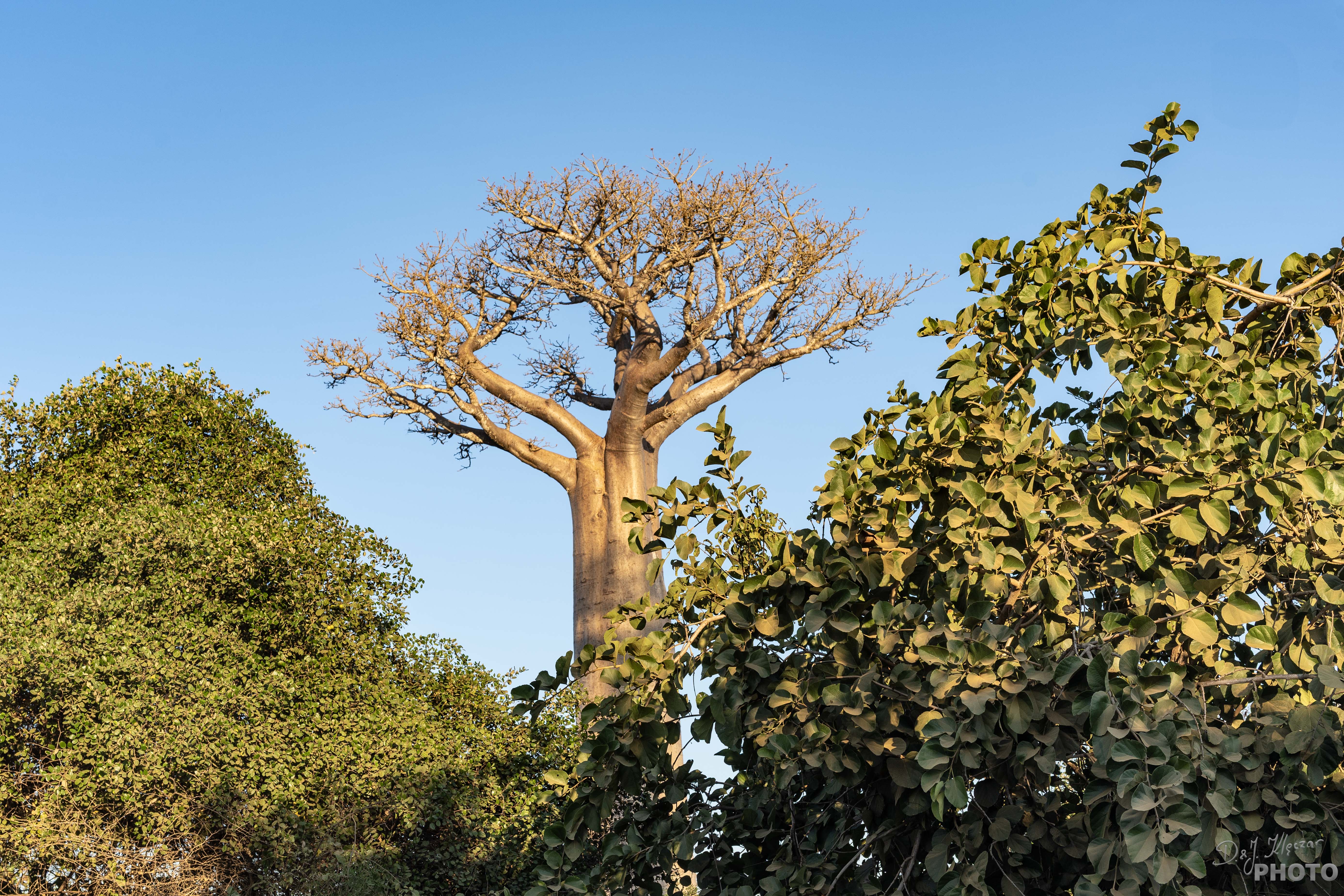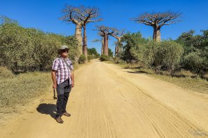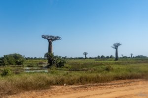 Po wizycie w CEM wsiedliśmy do podstawionych jeepów i ruszyliśmy na północ do Kirindy. Już po około godzinie jazdy dojechaliśmy do słynnej Alei Baobabów, leżącej w pobliżu Parku Narodowego Kirindy. Na świecie występuje osiem gatunków baobabów z czego na Madagaskarze występuje sześć endemicznych gatunków tych drzew. Z pozostałych dwóch jeden w Afryce kontynentalnej a drugi w Australii. Drzewa te mają specyficzny wygląd. Z silnie zgrubiałym pniem i o charakterystycznej koronie przypominającej system korzeniowy wyglądają jak drzewa „rosnące do góry nogami”. Pora dnia nie była najlepsza do zdjęć, ale i tak baobaby stanowiły ciekawe tematy fotograficzne.