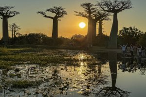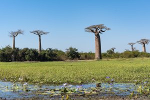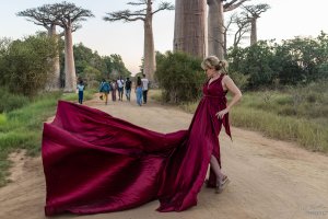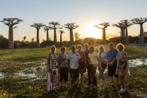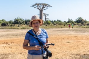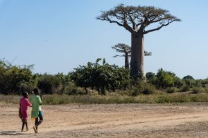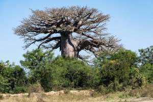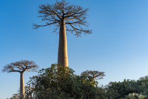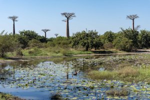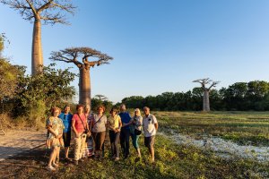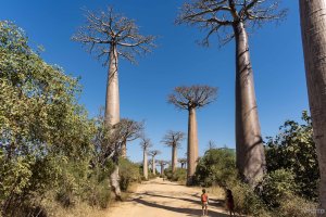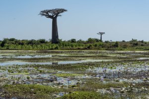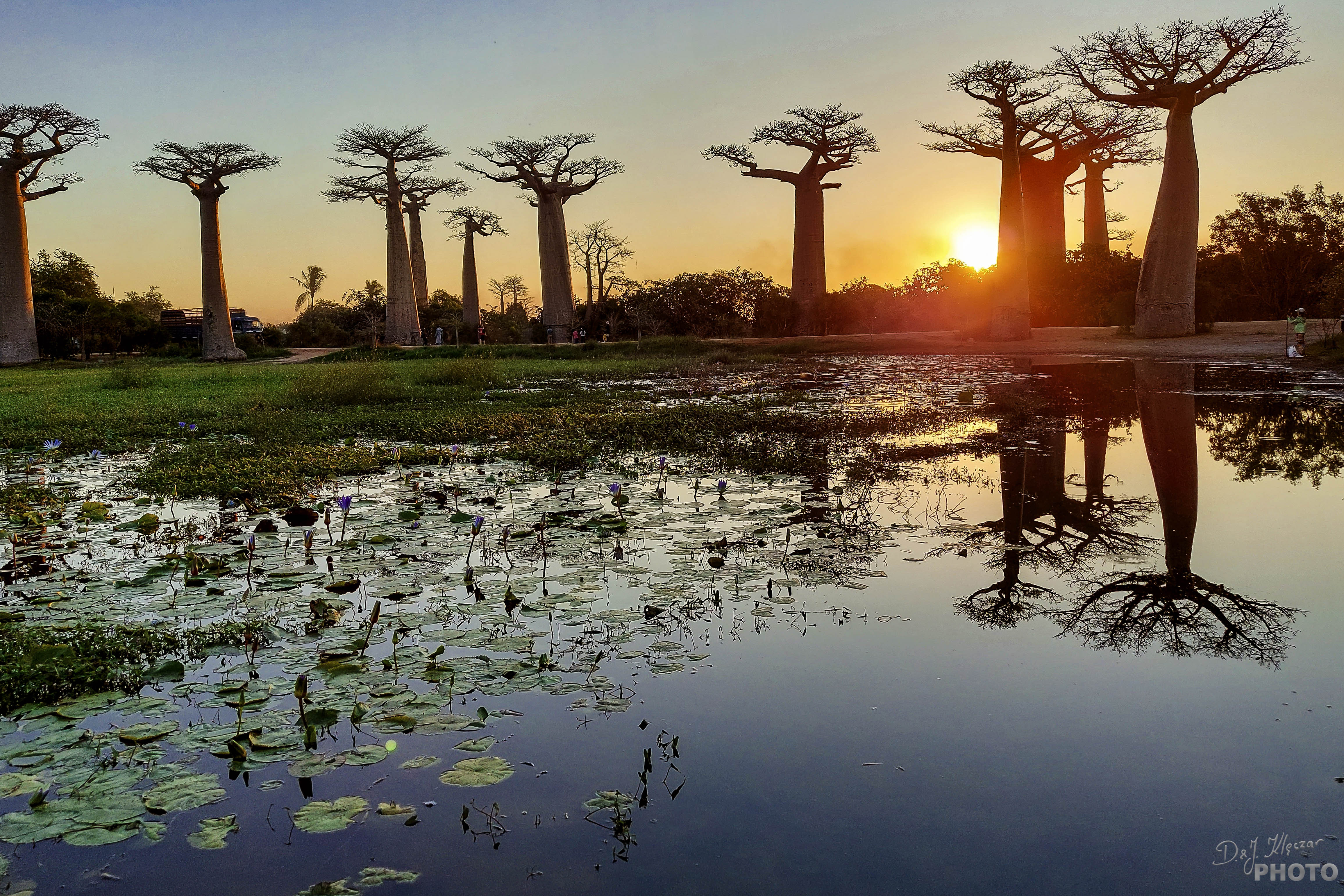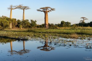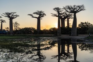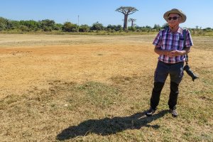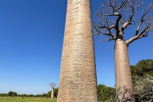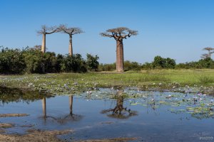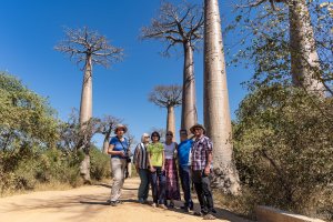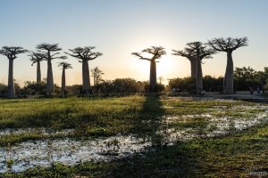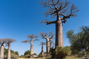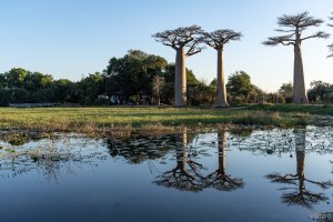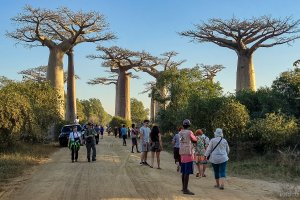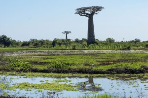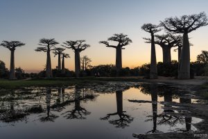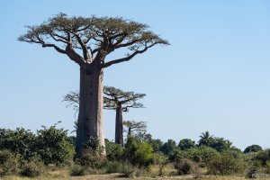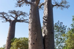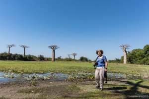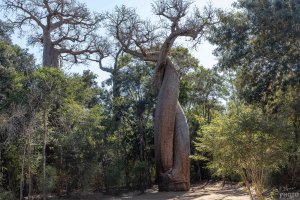 Po wizycie w CEM wsiedliśmy do podstawionych jeepów i ruszyliśmy na północ do Kirindy. Już po około godzinie jazdy dojechaliśmy do słynnej Alei Baobabów, leżącej w pobliżu Parku Narodowego Kirindy. Na świecie występuje osiem gatunków baobabów z czego na Madagaskarze występuje sześć endemicznych gatunków tych drzew. Z pozostałych dwóch jeden w Afryce kontynentalnej a drugi w Australii. Drzewa te mają specyficzny wygląd. Z silnie zgrubiałym pniem i o charakterystycznej koronie przypominającej system korzeniowy wyglądają jak drzewa „rosnące do góry nogami”. Pora dnia nie była najlepsza do zdjęć, ale i tak baobaby stanowiły ciekawe tematy fotograficzne.
