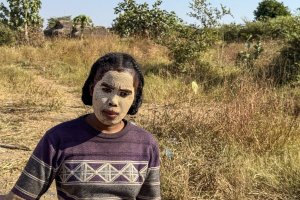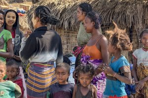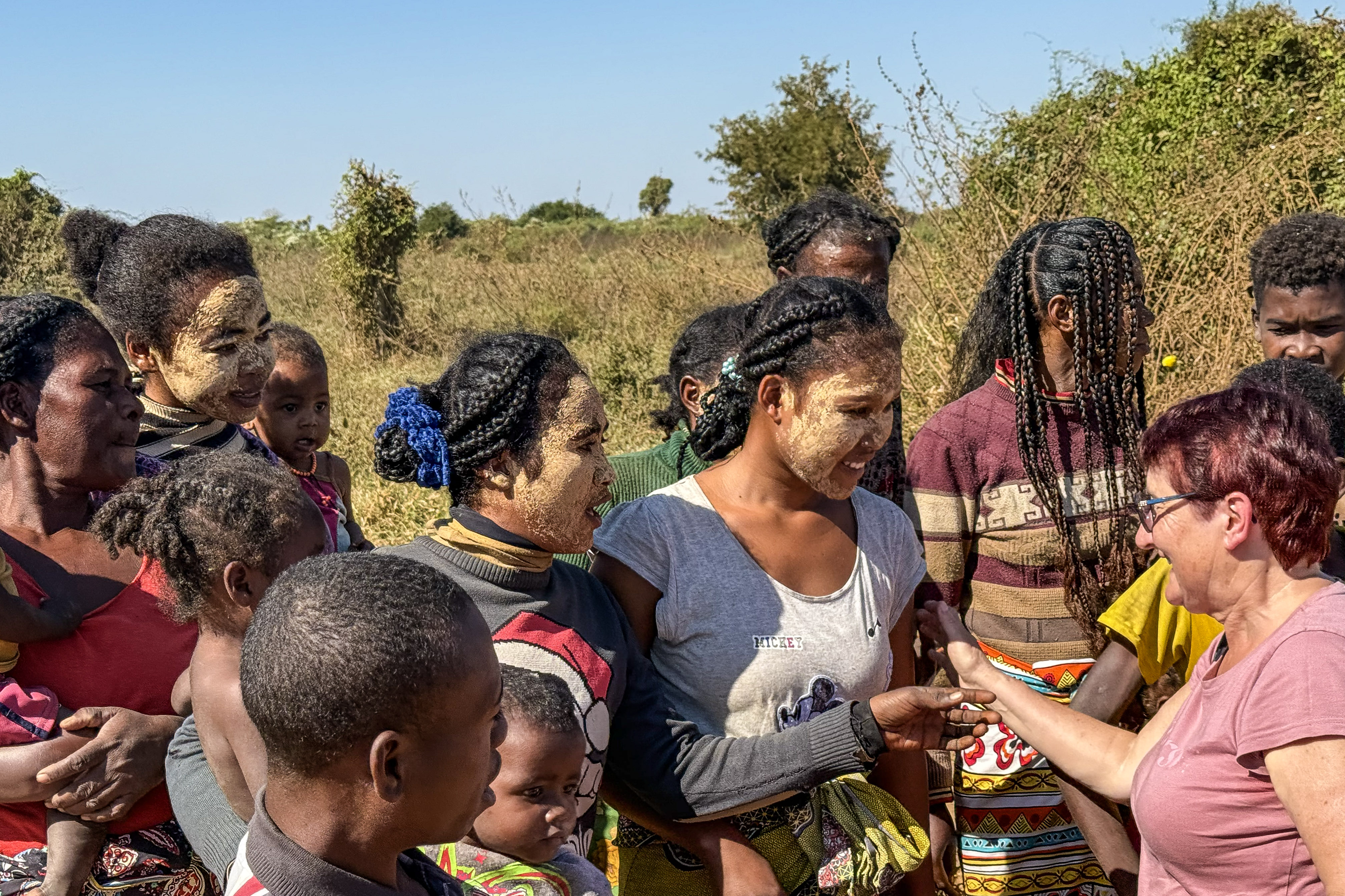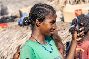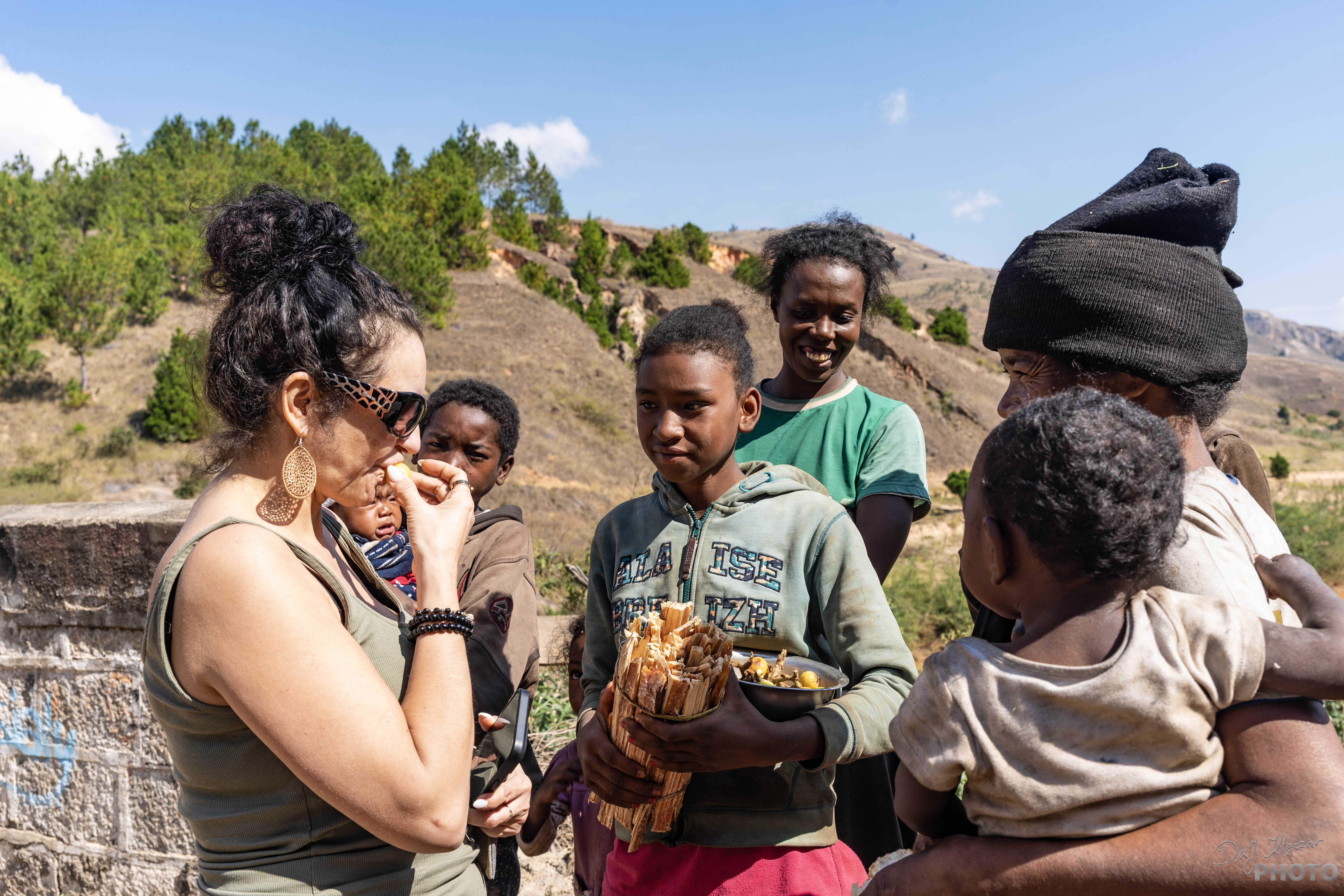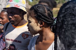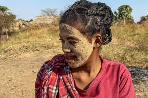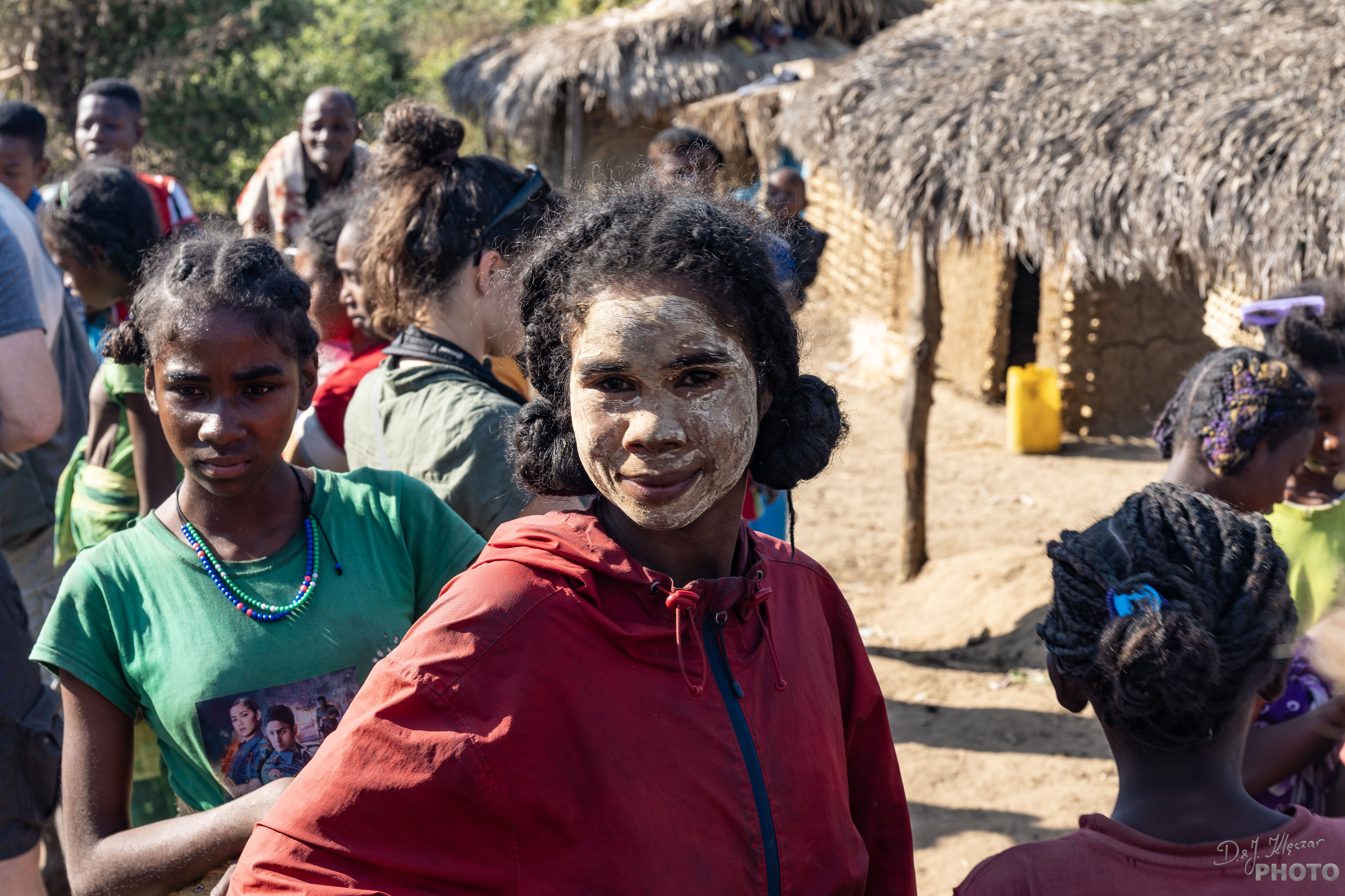 Potem zatrzymaliśmy się w leżącej już na płaskowyżu małej wiosce, której mieszkańcy bardzo przyjaźnie nas przyjęli. Przy okazji, na Madagaskarze kobiety malują twarze naturalnymi barwnikami uzyskanymi z kory drzew i sproszkowanych kamieni. Służy to upiększeniu, ochronie przed słońcem i ponoć daje uczucie chłodu w gorące dni.