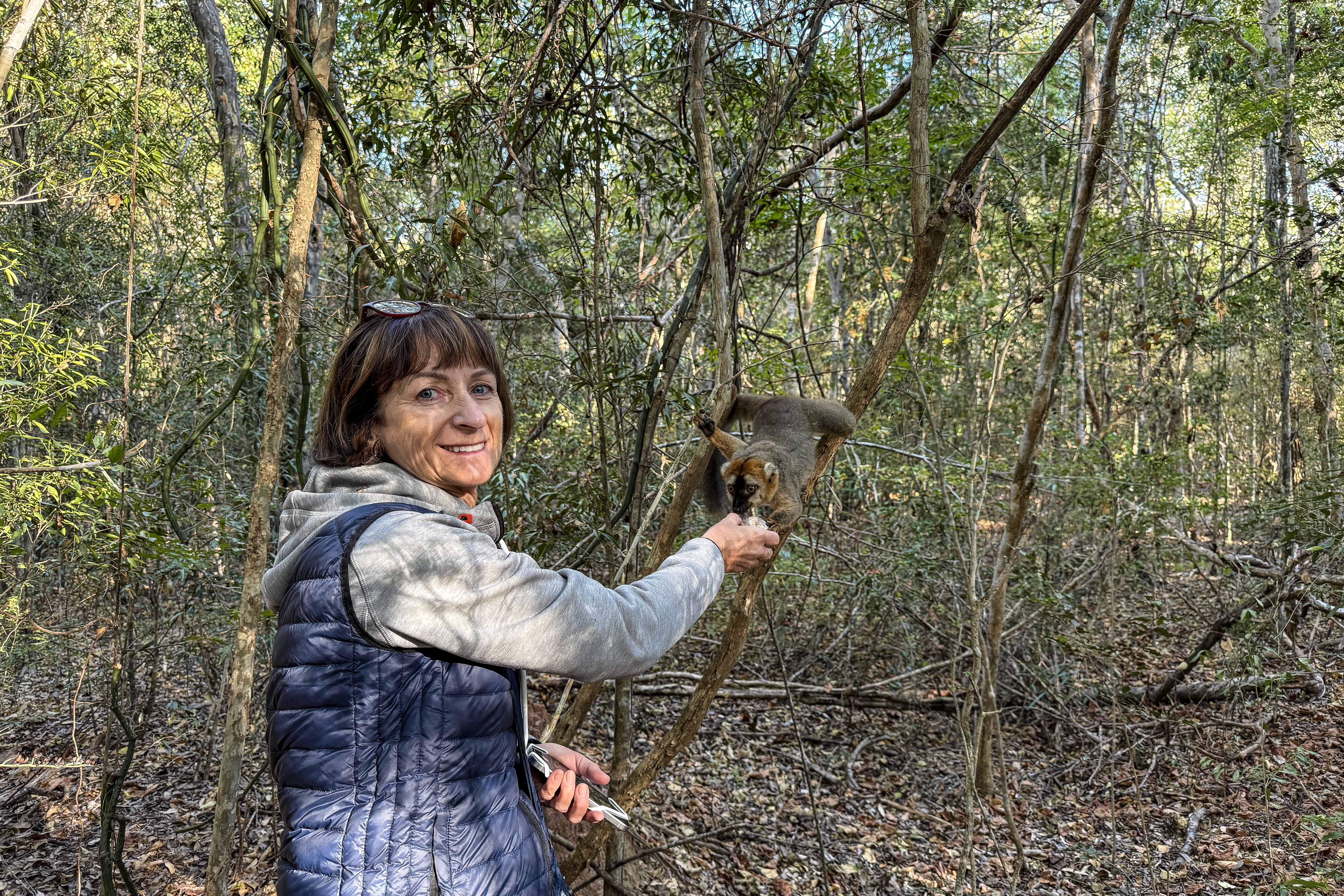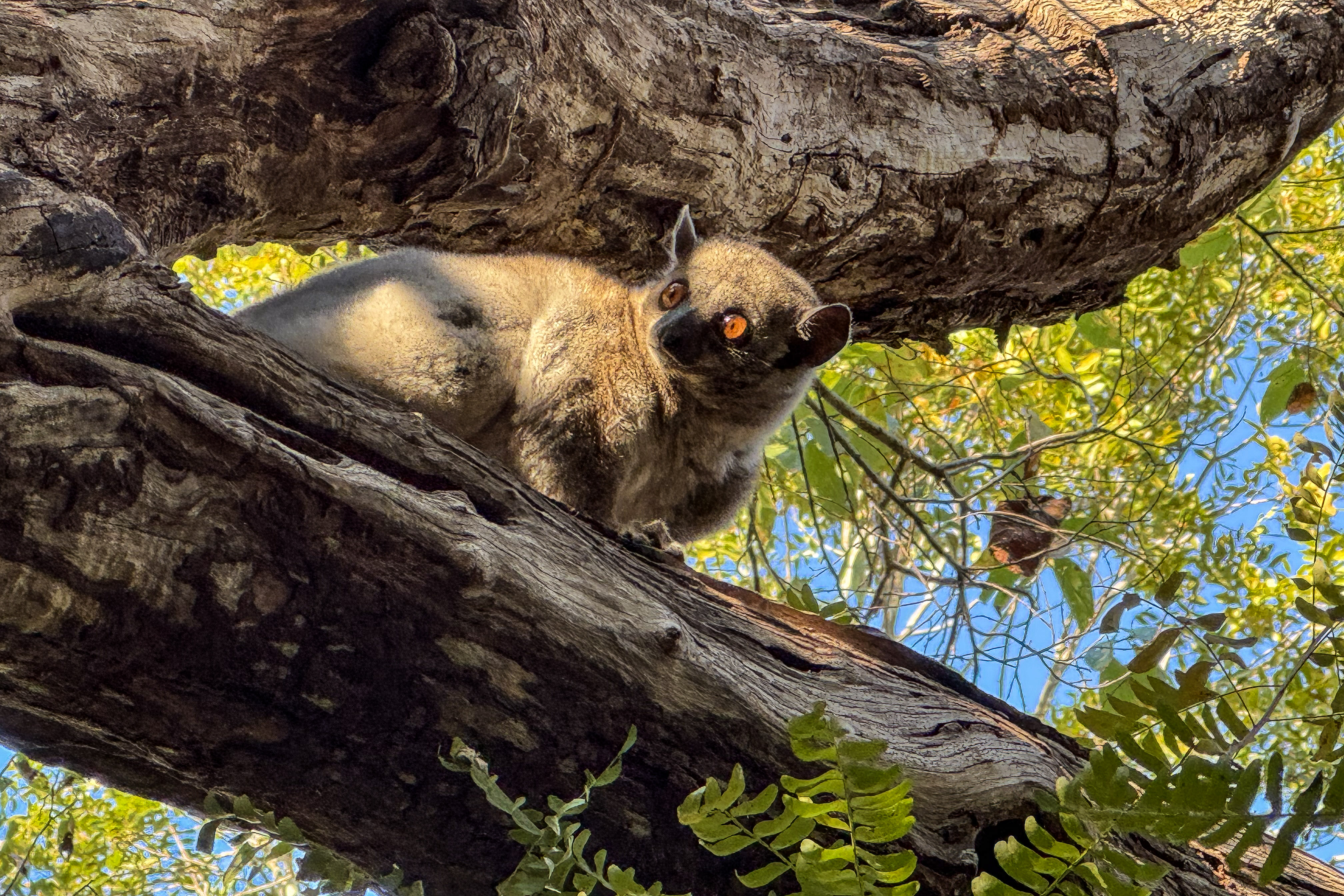 Po noclegu w wiosce Kirindy ruszyliśmy w dalszą trasę. Na początek pojechaliśmy jeszcze raz do miejsca naszych nocnych spacerów. Na parkingu przywitała nas fossa madagaskarska – największy ze ssaków drapieżnych występujących na Madagaskarze. Także lemury były łaskawe się zaprezentować. Szczególnie niewielkie, rudawe wari o wielkich oczach były przyjaźnie nastawione, głównie wtedy kiedy przewodnik postawił im muszle z wodą do picia. Z kolei sifaka trzymały się z daleka skacząc wysoko w koronach drzew.