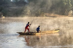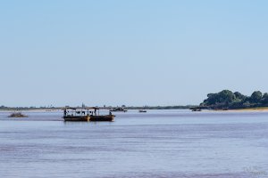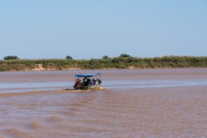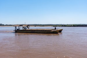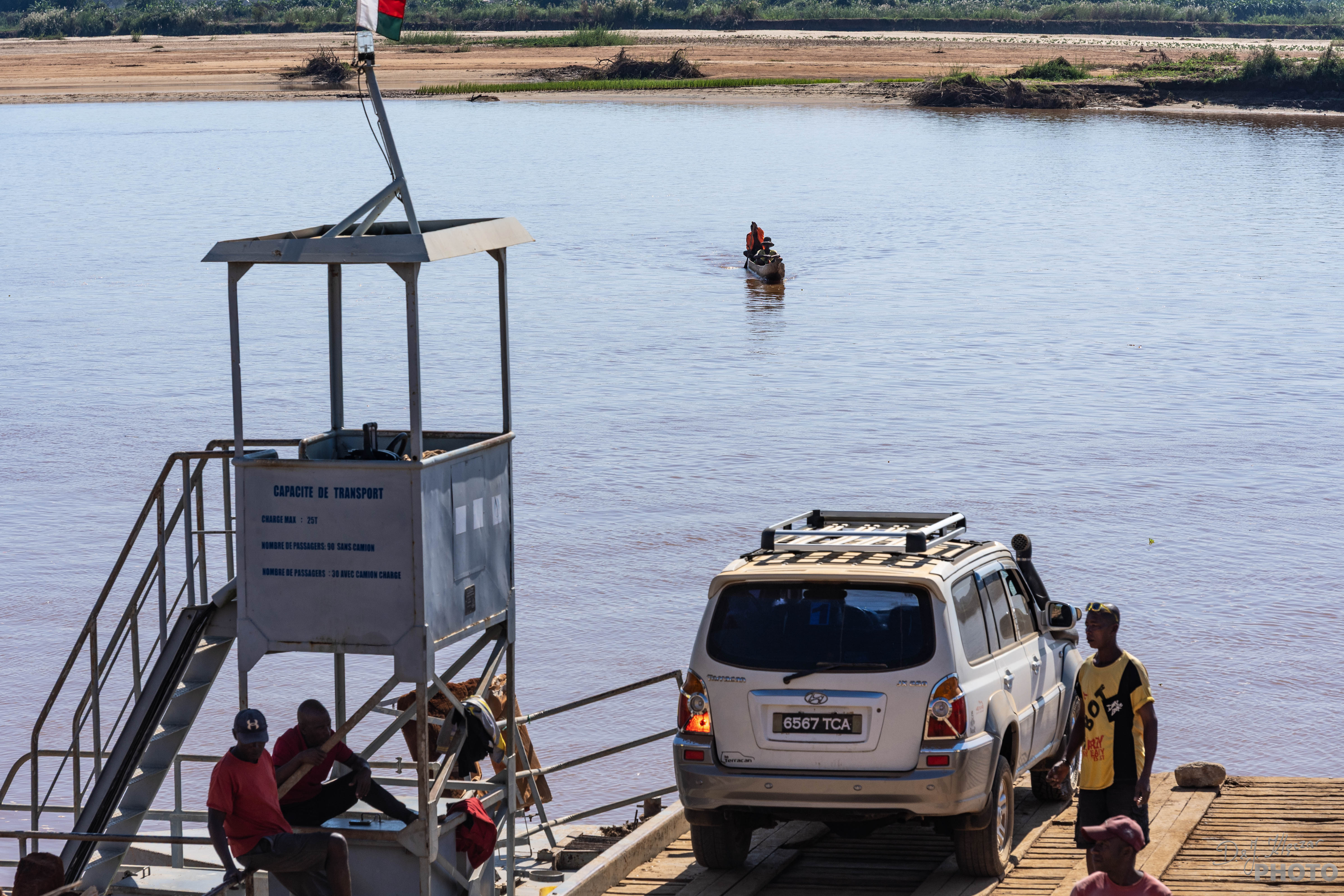 Po odwiedzinach u lemurów ruszyliśmy dalej na północ. Droga była koszmarna – pełno dziur i czerwony pył unoszący się spod kół. Mieliśmy do pokonania nieco ponad 40 km a zajęło nam to trzy godziny. Ale w końcu dotarliśmy do przeprawy promowej przez rzekę Tsiribihina. To jedna z większych rzek Madagaskaru – ma 460 km długości – no i oczywiście nie ma mostów. Przeprawa promem mieszczącym maksymalnie 30 osób wraz z samochodami trochę trwała bo musieliśmy przepłynąć zakole rzeki aż do miejscowości Belo Sur Tsiribihina.