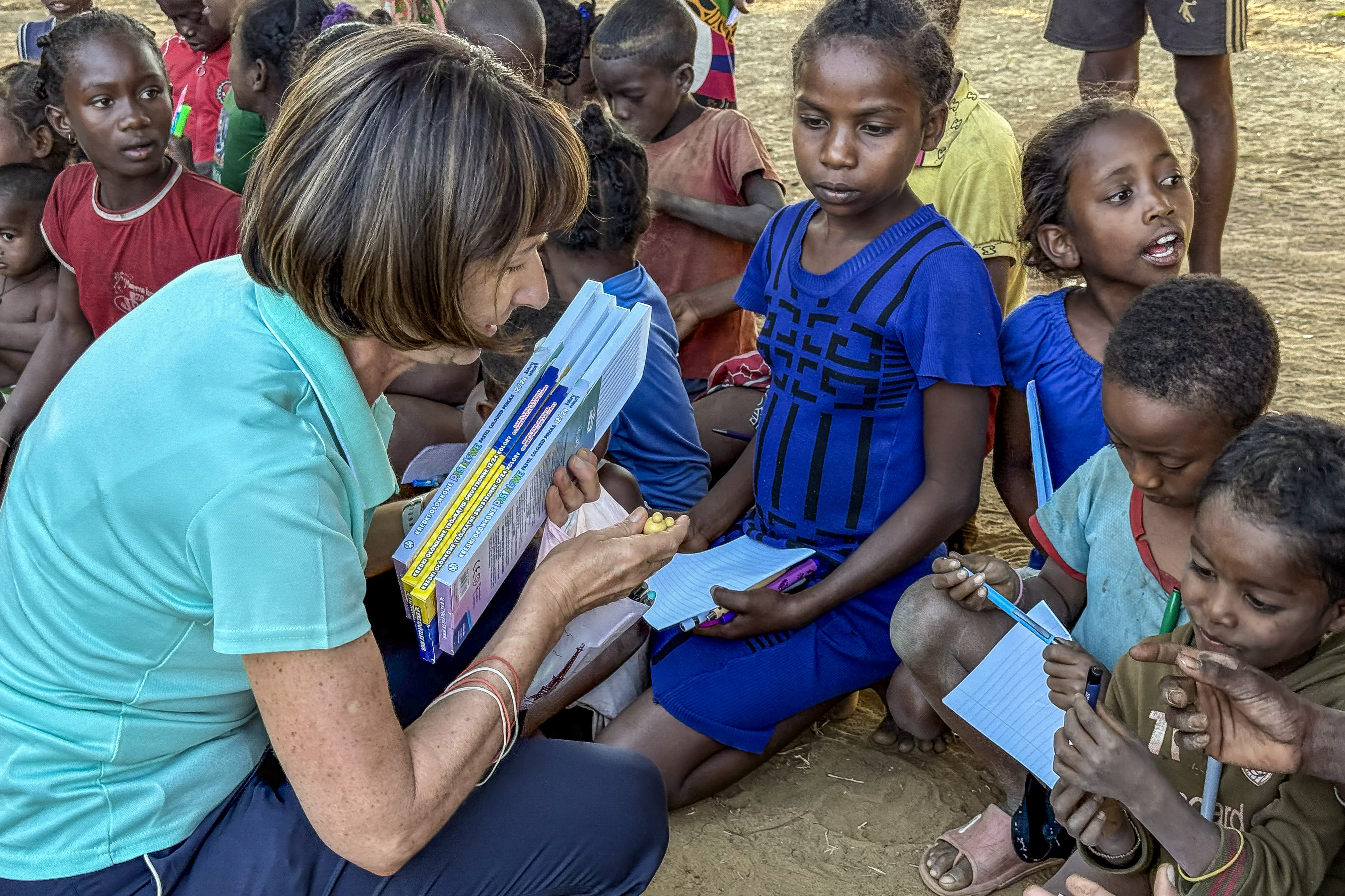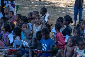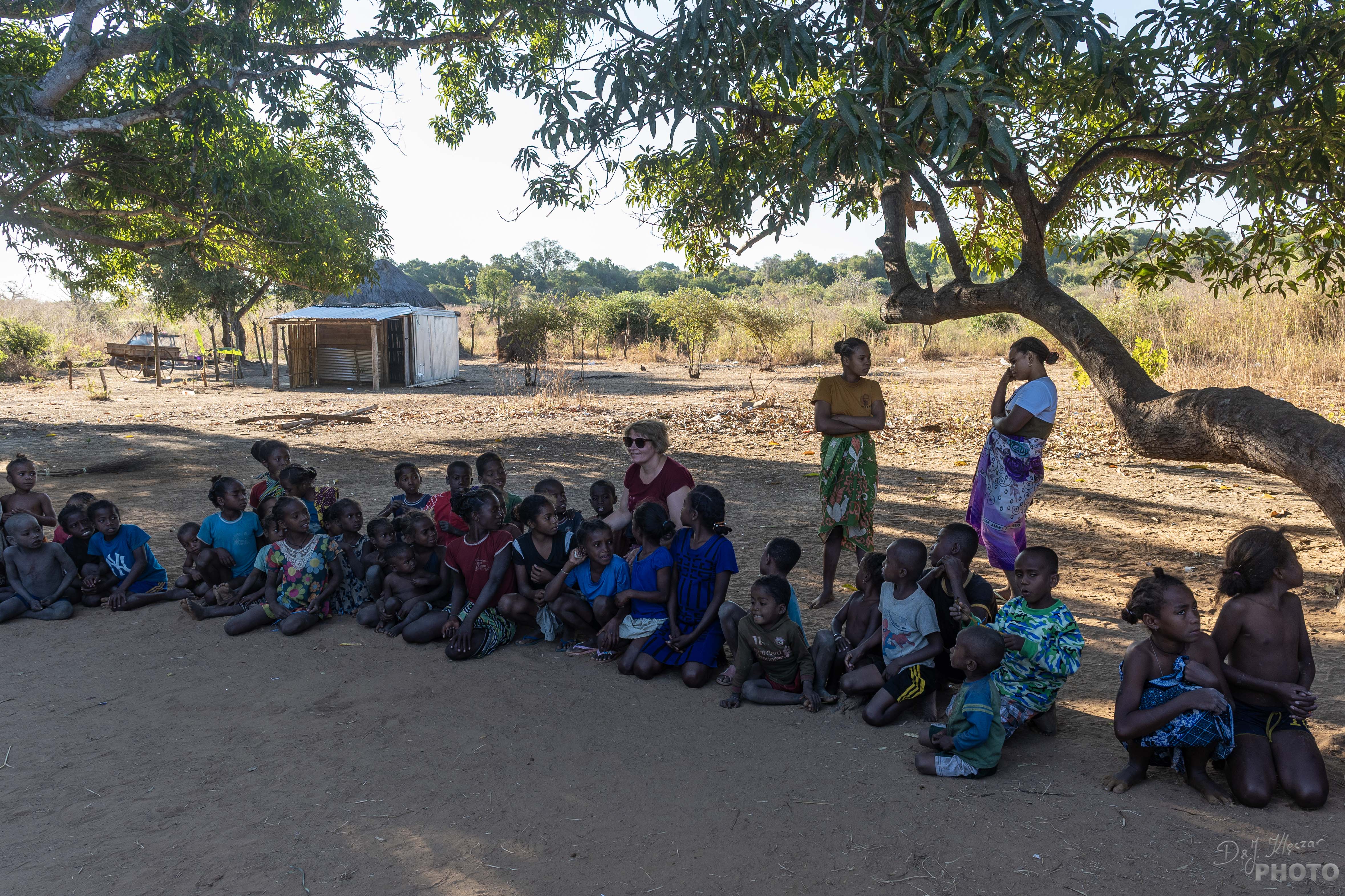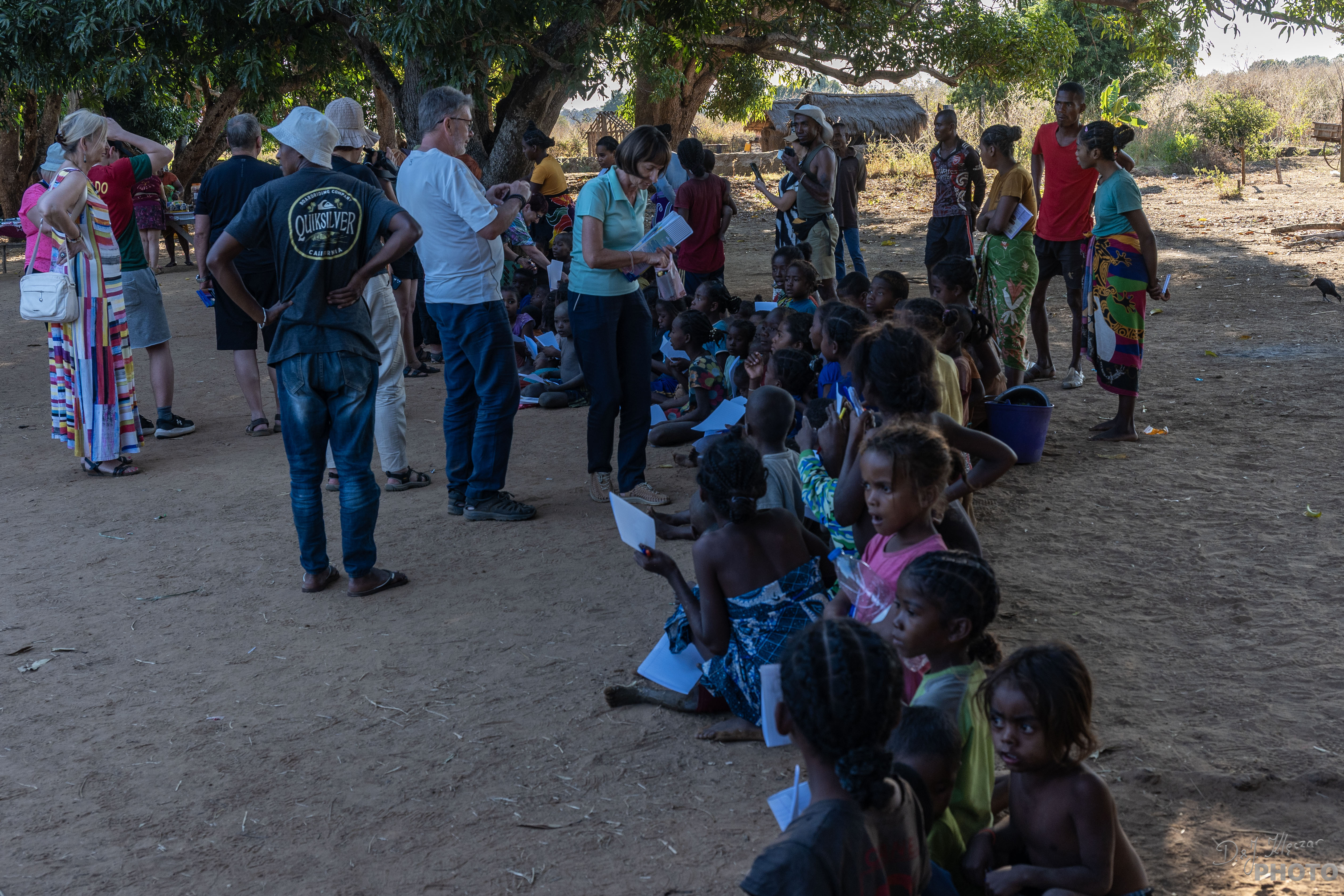 Po lunchu w fajnej knajpce w miejscowości Belo Sur Tsiribihina ruszyliśmy dalej. Po drodze zatrzymaliśmy się w wiejskiej szkole, aby podarować dzieciom trochę szkolnych przyborów.