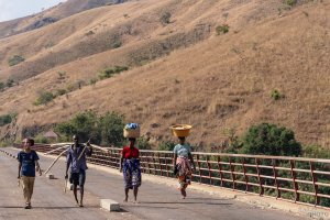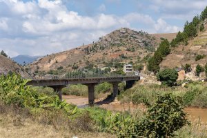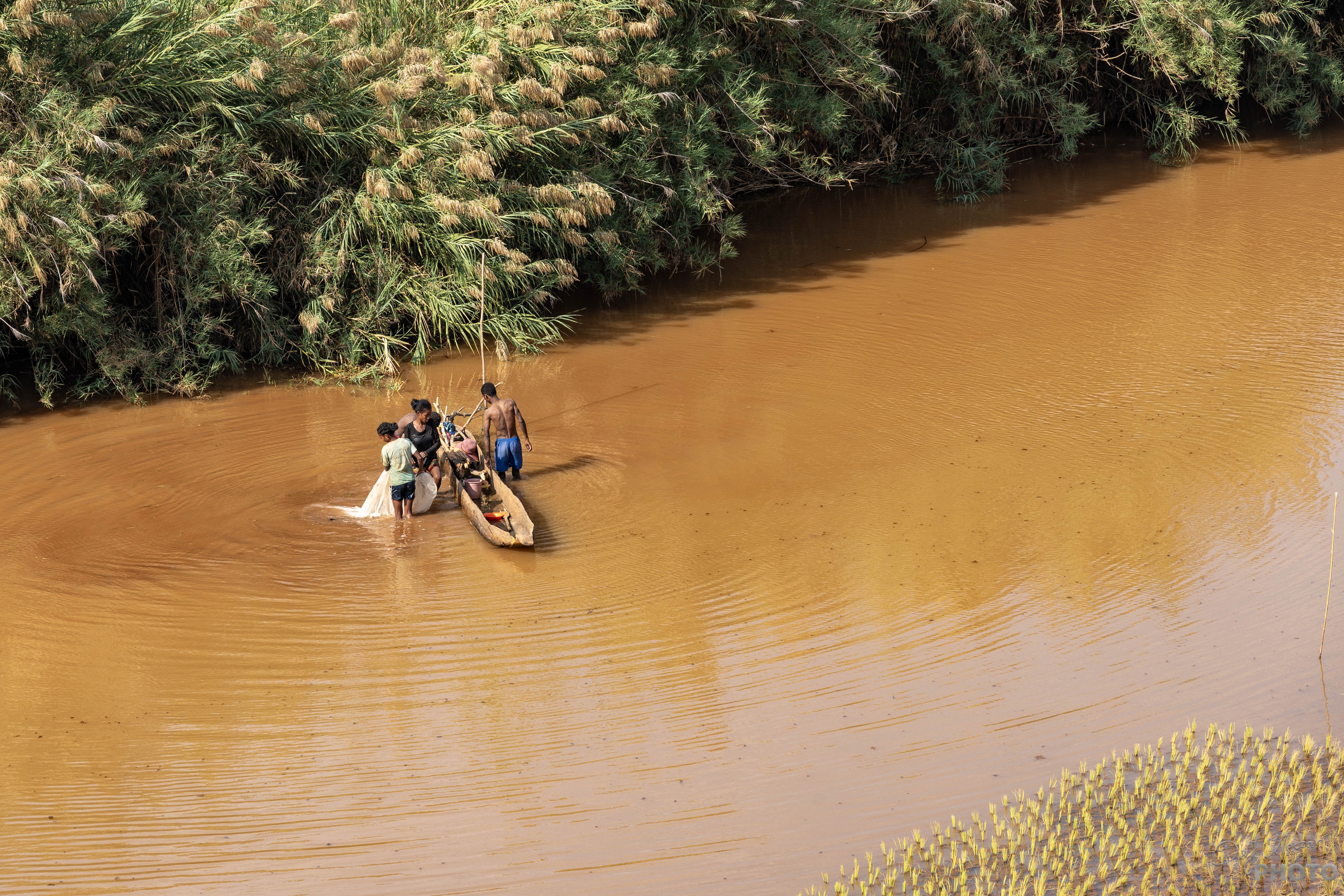 Dalsza droga wiodła wśród pól ryżowych w rozlewiskach rzek do mostu Tsiribihina, jednego z dłuższych na Madagaskarze.