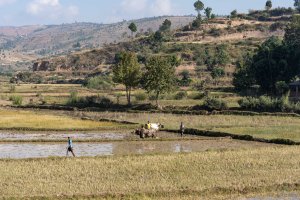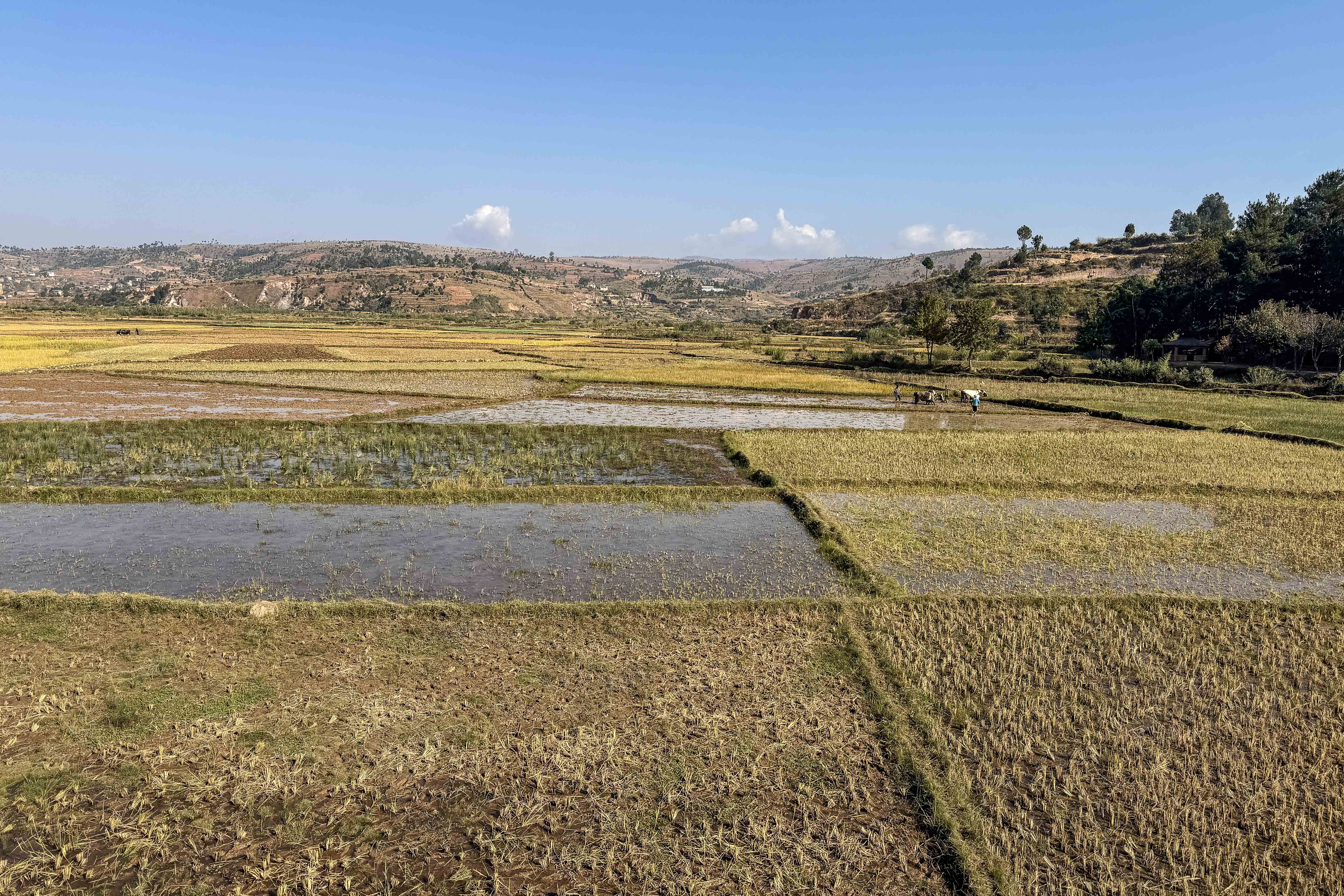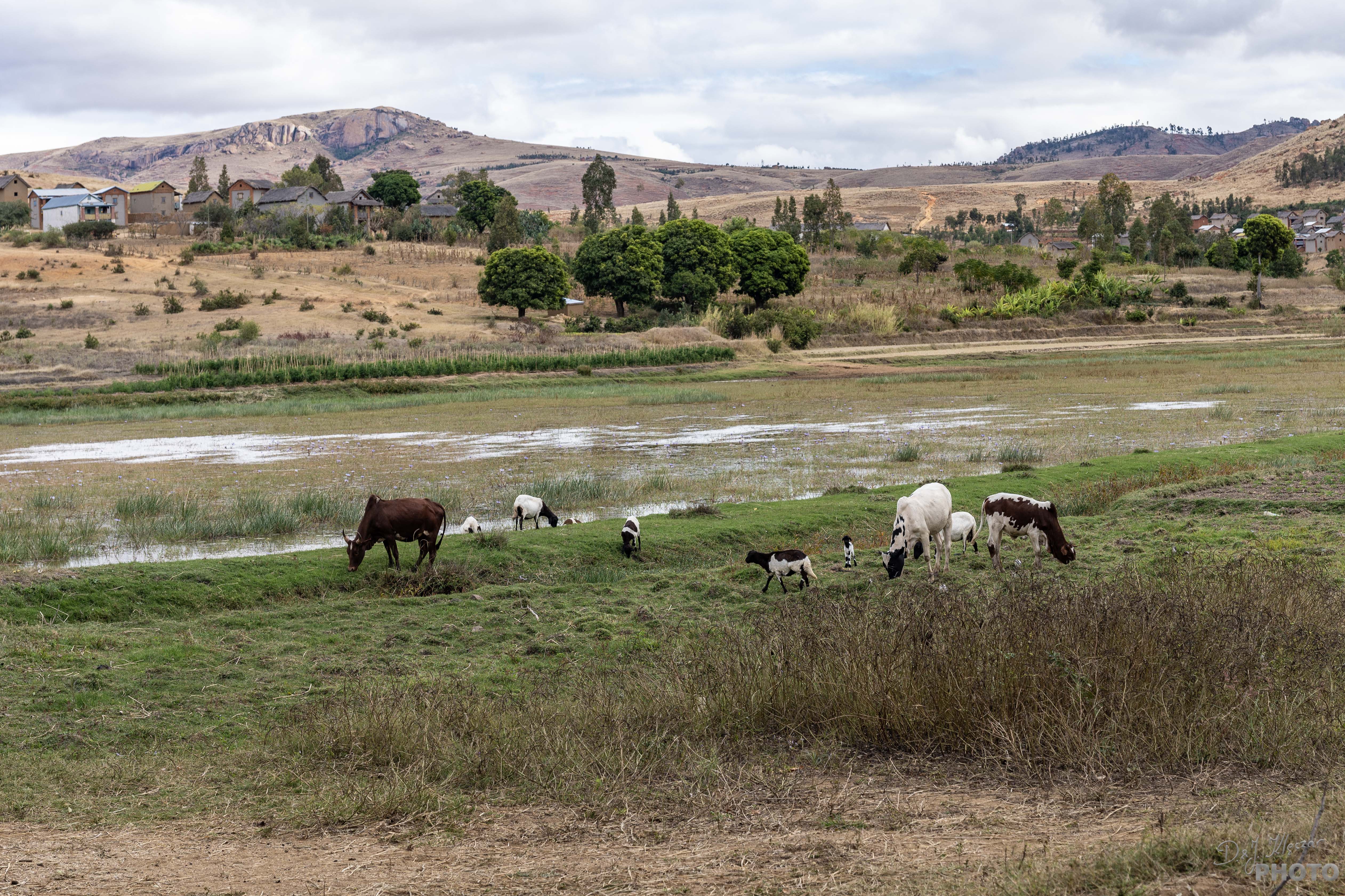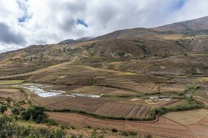 Po obfotografowaniu wodospadów ruszyliśmy w dalszą drogę przez wyżynne tereny centralnego Madagaskaru. Wzgórza pocięte korytami rzek nad którymi tarasowo wznosiły się pola ryżowe były ciekawymi tematami do zdjęć.