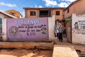 Po czterech godzinach jazdy dotarliśmy do malowniczego miasteczka Ambalavao, gdzie odwiedziliśmy warsztat produkcji jedwabiu Soalandy Atelier. Madagaskar jest domem dla endemicznego gatunku jedwabnika, który żywi się liśćmi dziko rosnących drzew tapia. Z jego kokonów wytarza się nici i tkaniny jak „konwencjonalny” jedwab. W sklepiku przy warsztacie można było kupić wyprodukowane z niego szale i inne pamiątki.