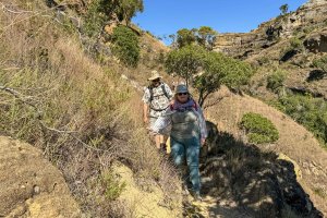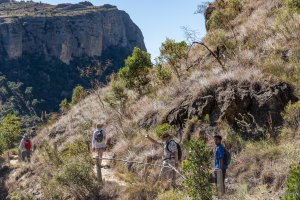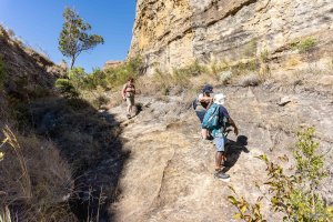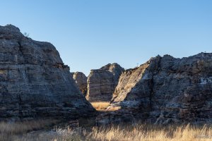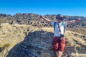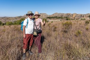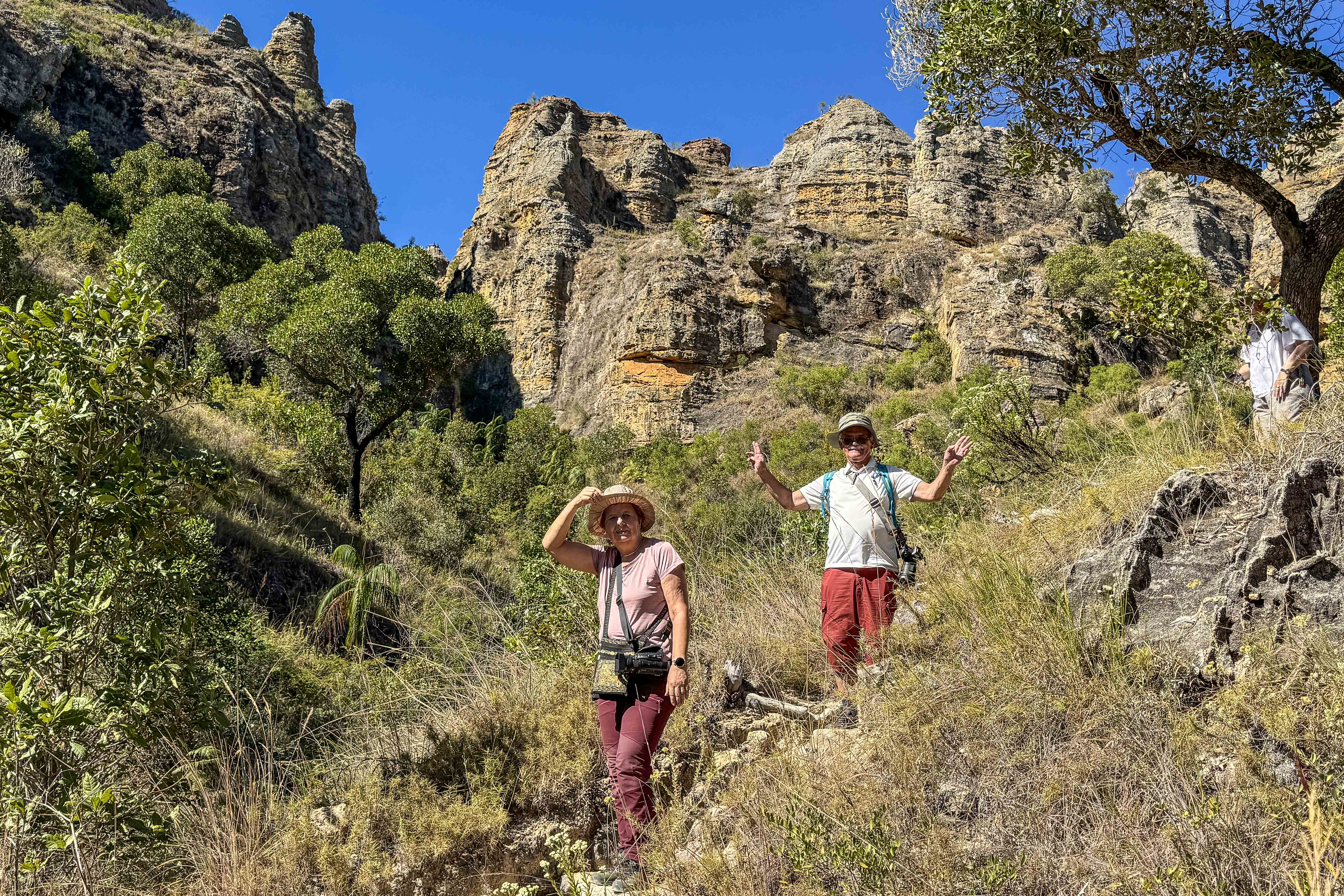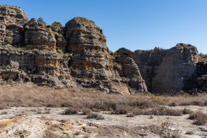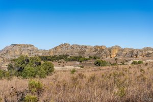 Wczesnym rankiem następnego dnia, przy pięknej pogodzie pojechaliśmy na trekking do parku narodowego Isalo. Jest to jeden z najbardziej znanych i imponujących parków narodowych na Madagaskarze, który zachwyca przede wszystkim swoim niezwykłym krajobrazem. Park Isalo bywa nazywany "madagaskarskim Kolorado" ze względu na swoje skalne formacje. Jego krajobraz to rozległy, poprzecinany kanionami i dolinami płaskowyż z jurajskiego piaskowca. Miliony lat erozji wiatru i wody wyrzeźbiły tu spektakularne formacje skalne, kolumny, ostre szczyty i jaskinie.