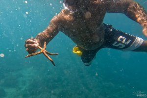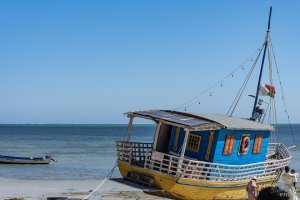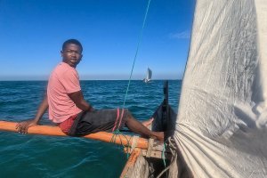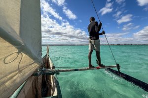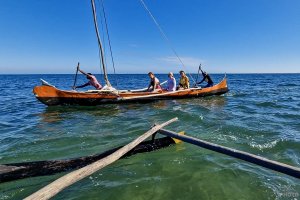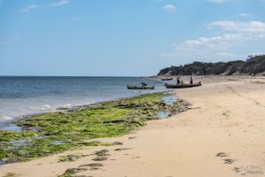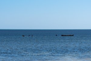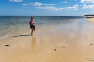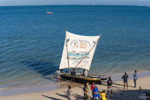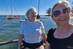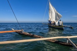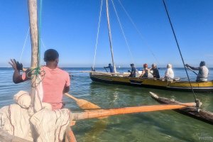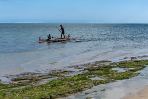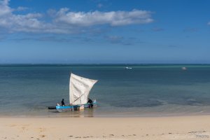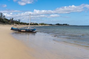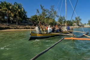 Rankiem następnego dnia pojechaliśmy do położonej w pobliżu plaży Ifaty skąd popłynęliśmy lokalnymi łodziami na pobliską rafę koralową. To była przygoda – łodzie, proste dłubanki z bocznym pływakiem i skośnym żaglem zabierały po trzy osoby. Załogę stanowiło dwóch Malgaszy, którzy radośnie uprawiali wyścigi łodziami nie zważając na nasze lekko wystraszone miny. Po dopłynięciu do rafy popływaliśmy i ponurkowaliśmy w fajnej wodzie. Trochę stresów było przy skokach z łodzi do morza a jeszcze większe przy powrocie na łódź. Ale z pomocą naszych marynarzy nie było z tym wielkich problemów.